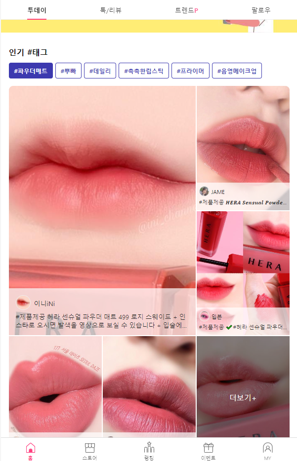 리뷰, 콘텐츠, 랭킹, 쇼핑, 쿠폰,체험단,이벤트까지! 종합 뷰티 플랫폼!