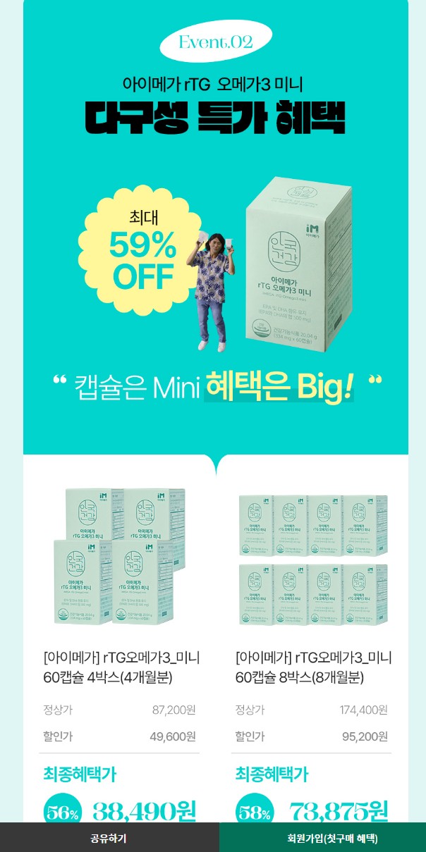 우일이형과 함께 하는 아이메가 오메가3 최대 63% 할인 혜택