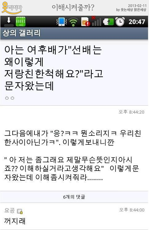 | 오늘의 웃낀 이미지 - 여자친구생기는방법, 중국에서 받은 선물 등등 (2013.02.08) (0) | 2013.02.08 |